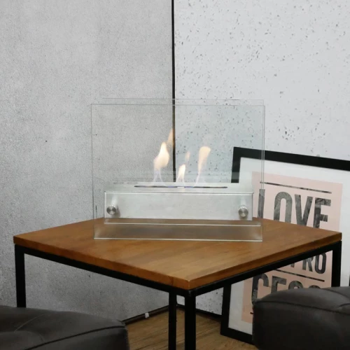 Tabletop Bioethanol Fireplace with 2 Glass Sides