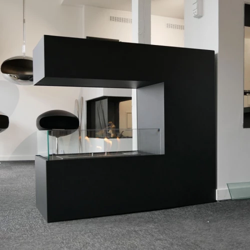 Freestanding three-sided bioethanol fireplace perfect to use as a room divider or to extend an existing wall. This fireplaces provides a nice view of the flames from 3 sides.