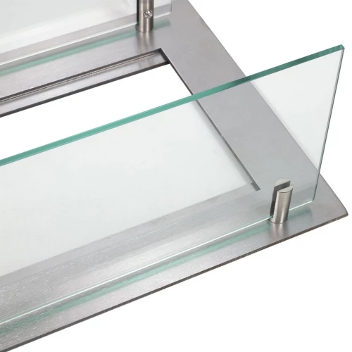 You have the option of mounting safety glass directly on the frame. The glass helps protect the flame from wind, and therefore, gives a more steady flame.