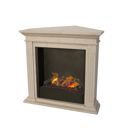 This Cadiz Corner model made by Xaralyn comes with an innovative Opti-myst burner that creates pretty flames with the traditional look of the frame offering white natural stone in a fossil stone look.