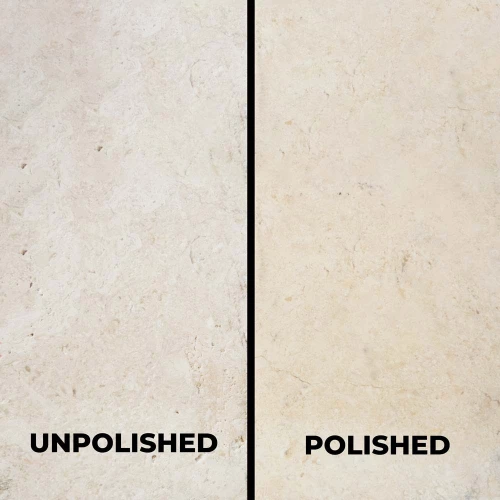 It is possible to choose between a polished or unpolished stone surface. The polished surface is a bit shiny and smooth, whereas the unpolished is matte and porous.