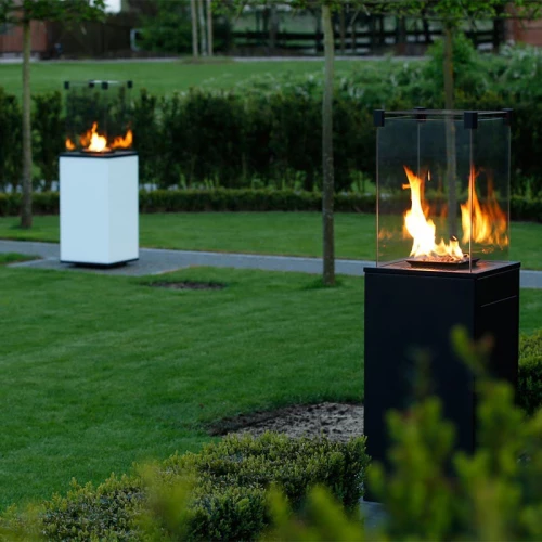 Outdoor automatic gas fireplace in black