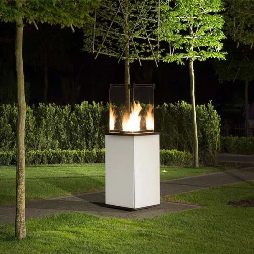 Outdoor automatic gas fireplace in white