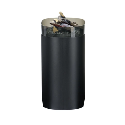 Thorn 64 is produced of steel and provides view of the flame effects all around the fireplace. The flames are created by a Dimplex Opti-myst Cassette which, by way of water and light, creates an amazing flame effect with no heat or fire hazard.