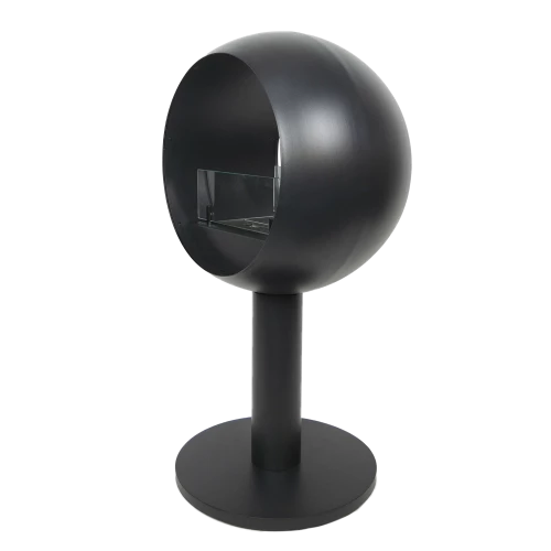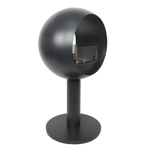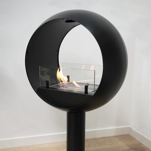 Edmonton is a bio fireplace with a black round shere that beautifully frames the fireplace flames. This version of Edmonton has visible flames from two sides of the fireplace and is designed to be free-standing, which means it can be freely placed on the floor and moved around as needed, without any kind of installation.