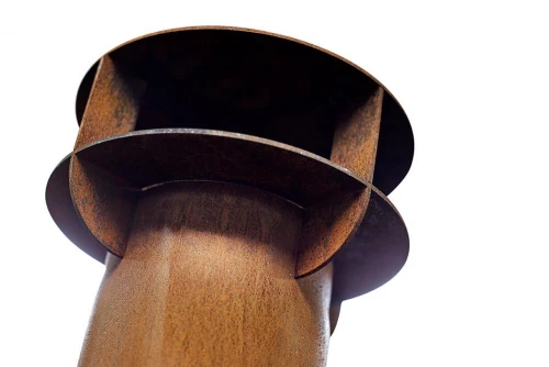 The chimney is equipped with a 20 cm plate on top, which prevents rain from getting into the fireplace. Likewise, bolts are fitted on the legs, lifting the fireplace up, so no rust marks form on the terrace after the armouring process.