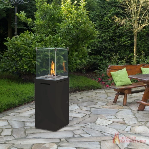 Outdoor Fuora Q patio heater / gas fireplace in black