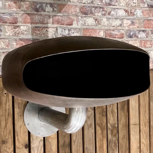 Unique and industrial UFO fireplace from the Danish manufacturer, Hein & Haugaard. The fireplace is handmade and there are, therefore, no 2 models that are 100% identical.