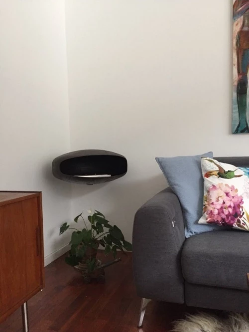 Stunning UFO bio fireplace for the wall from the danish manufacturer, Hein & Haugaard. The fireplace for bioethanol is easy to mount on the included wall bracket, and after that it can be filled with bioethanol and the nice flames and heat can be enjoyed.