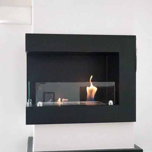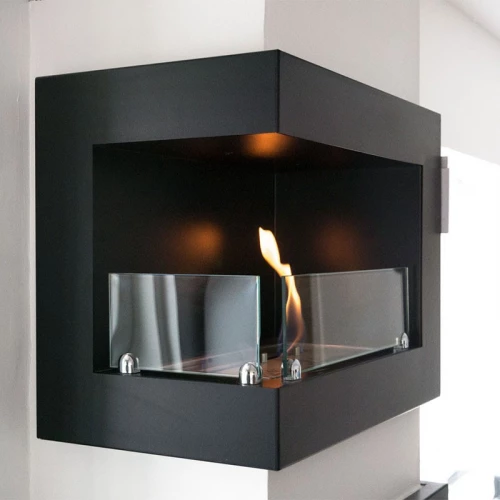 Black, built in bioethanol fireplace made to be mounted on the corner of the wall. With its dark contrast and wide frames the fireplace is refined and eye-catching. As the fireplace is mounted on the corner, the beautiful flames can be enjoyed from the whole room. Fireplace is graceful and unique, therefore will look great in its surroundings. With its black colour the flame appears stronger and deeper. There are two pieces of glass included so the fireplace is suitable for families with children or pets as well.