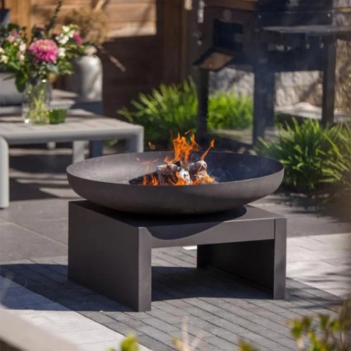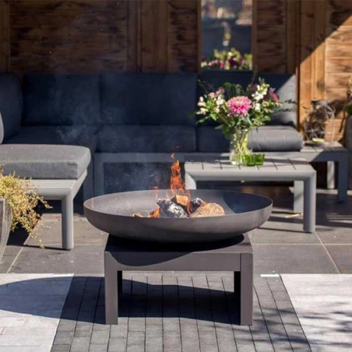 Firepit with a dark industrial design as will fit perfect into every garden for both the summer months but also in the winter. In addition, to be a stunning decoration for the garden, then Kotka also contributes to cosy times with the family or friends around the fire. With a diameter on 80 cm, it is possible to make a big fire as will burn way into the evenings and create a nice heat.