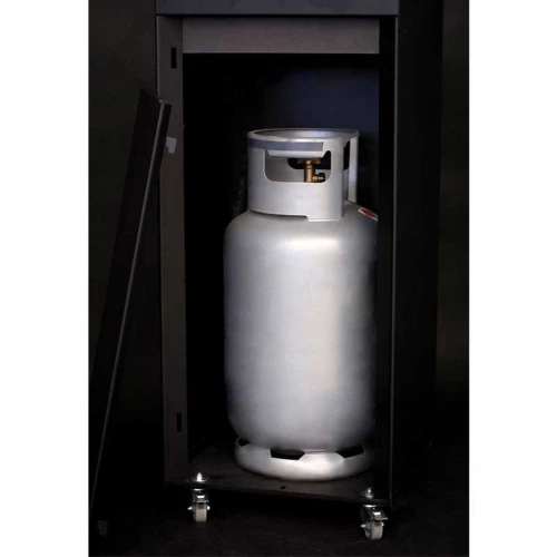 The gas cylinder can be hidden away inside the fireplace, where there is room for up to a normal 11 kg gas cylinder.