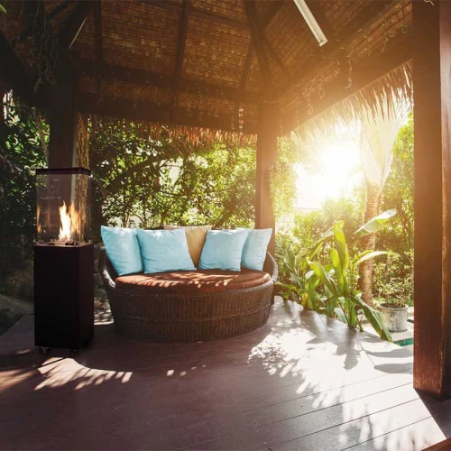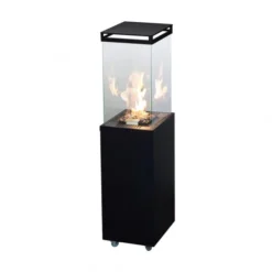 Tall stylish gas-fuelled terrace heater. The Planika Lighthouse can burn for up to 55 hours on a low flame level, on an 11 kg gas cylinder. At the highest flame level, you can expect about 17 hours of burn time on an 11 kg LPG gas cylinder.