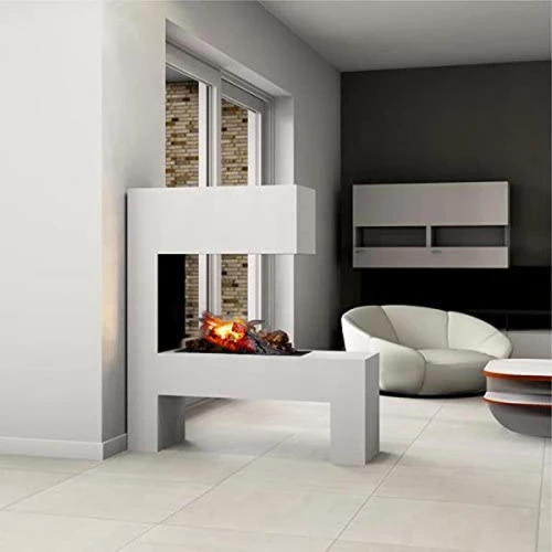 The white fireplace fits in every room, and the black colour on the inside creates a beautiful contrast with the orange flames. The installation process of the fireplace is incredibly easy. You only have to insert the cable into the electricity socket and fill the tank with water. After this, you can sit down and relax by the breath-taking flames.