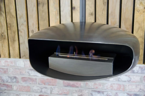 New York UFO-50 in stainless steel is a handcrafted ceiling-mounted bio ethanol fireplace, designed and produced at Hein & Haugaard in Northern Jutland, Denmark.
