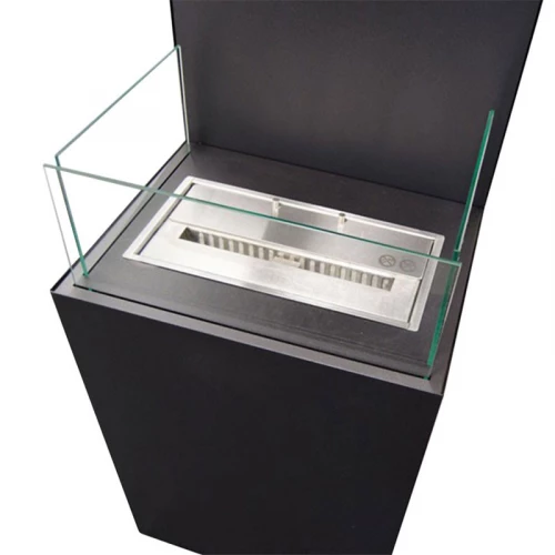 Open, three sided bio fireplace in black