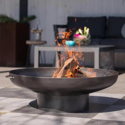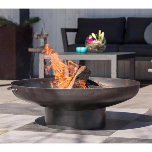 Big firepit made in untreated steel which gives an industrial look. Invite some friends or family to cosy time around the Oulu firepit. With a diameter on 80 cm is it possible to make a big fire as will increase the temperature.
