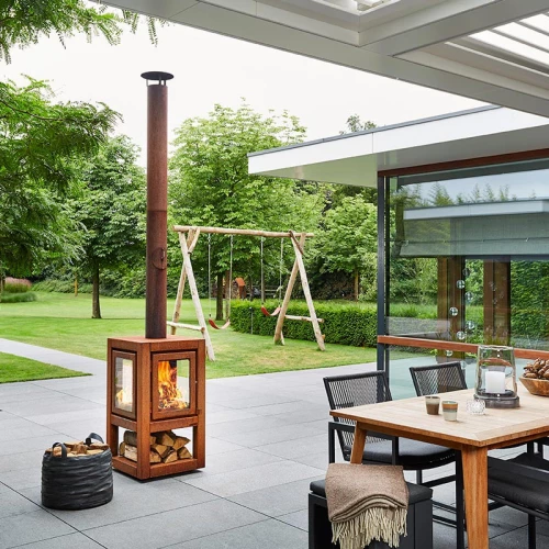 This model has a base plate which can be used to store firewood as well. Furthermore, this Quaruba XL Mobile is easy to move as it is equipped with 4 wheels.