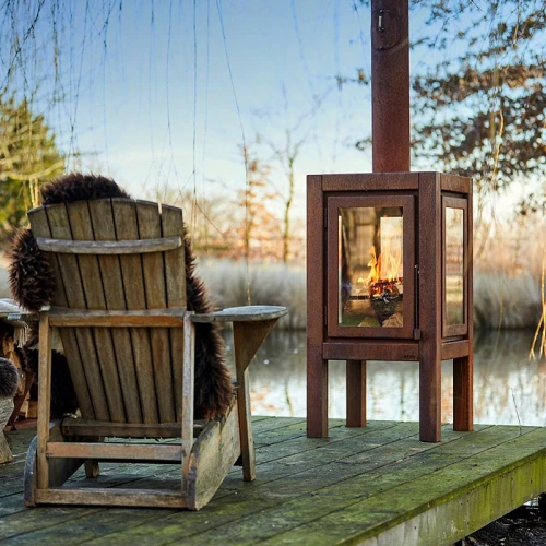 Quaruba XXL is a unique garden fireplace in a modern design, which makes it possible to choose how many, and which, sides should be glass. For example, you can choose to have 2 opposite glass sides, or the back side should be glass and thus the nearby side as well. It is entirely up to you.