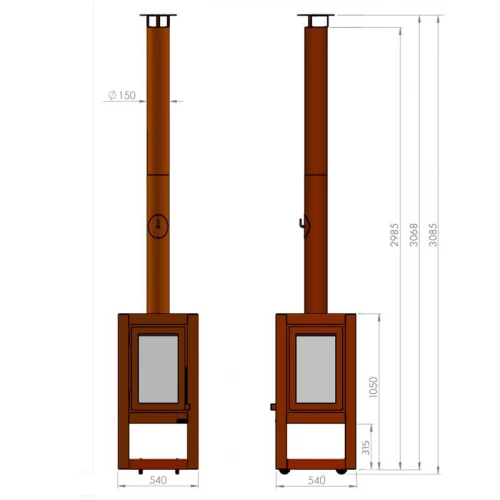 - 2 pcs of chimney: H: 100 x Ø: 15 x W: 0,2 cm