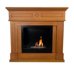 Freestanding bioethanol fireplace in traditional mantel fire suite look