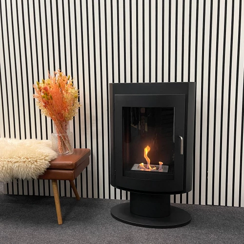 This bio fireplace for ethanol is designed as a classic wood-burning stove on a stand. In addition to its unique design, the fireplace offers several exciting features. With its modest weight of 15 kilos, the fireplace can be easily moved if you wish. Unlike the conventional wood-burning fireplace, you are not bound to have a chimney installed in your home.