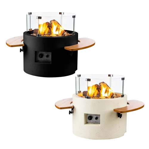 Wooden side table that fits Happy Cocooning’s Round gas fireplace tables.